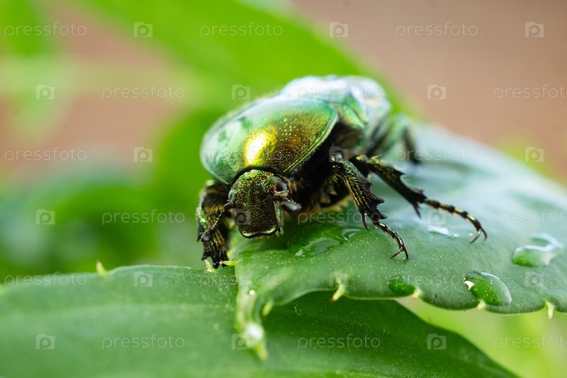 Cetonia aurata зеленый лист