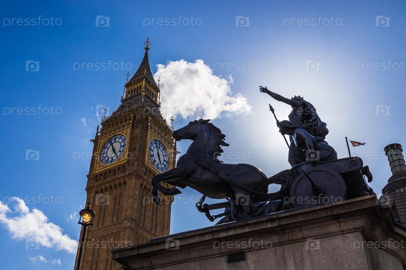 Статуя Боудикки с Биг-Беном. Знаменитая достопримечательность Лондона и исторический памятник
