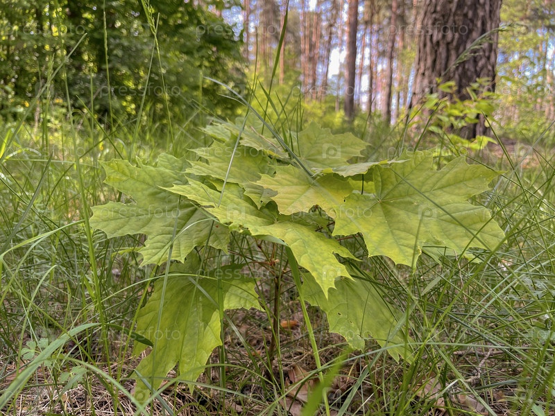 Весенний пейзаж - молодые сочные зеленые листья клена