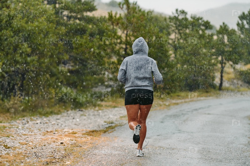 Неудержимый: решительный спортсмен тренируется под дождем в погоне за славой в марафоне