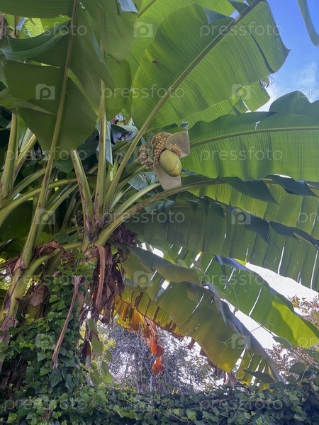 Бананы созревают на банановом дереве в Джорджии в сентябре
