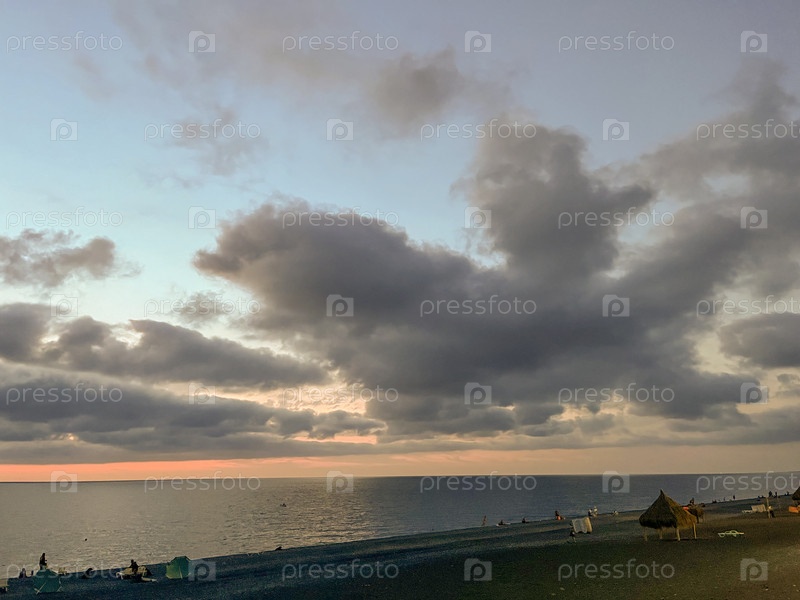 Морская волна катится по разноцветной гальке на побережье Черного моря