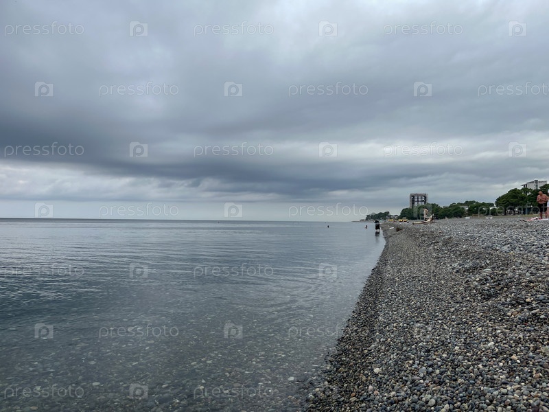 Закат на галечном пляже - на побережье Черного моря в Кобулети, Грузия, в сентябре