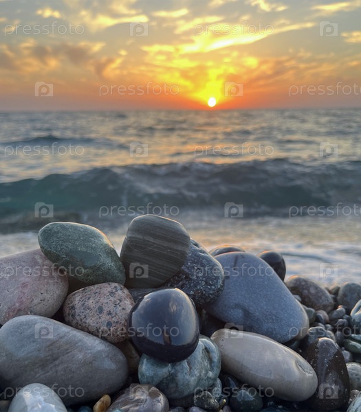 Закат на галечном пляже - на побережье Черного моря в Кобулети, Грузия