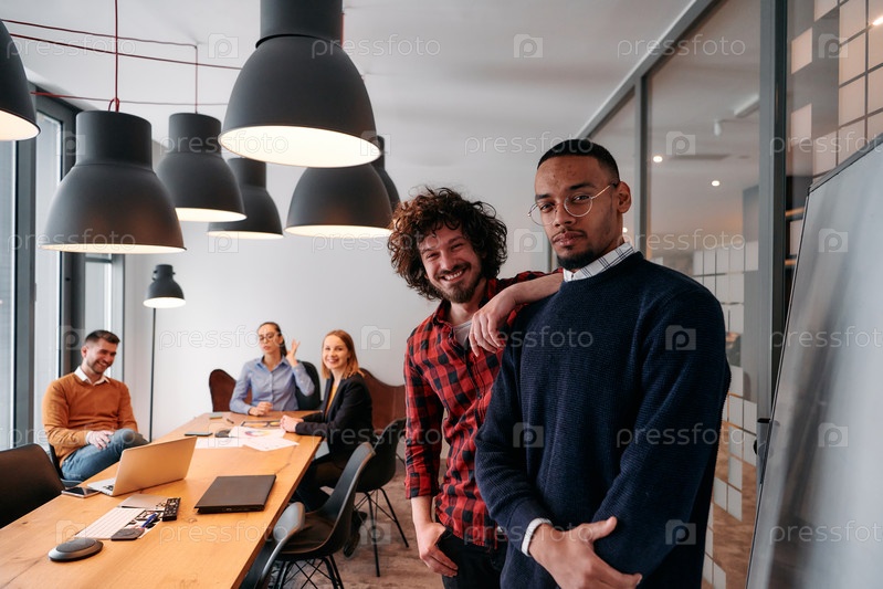 Афроамериканские бизнесмены и их коллеги в современной офисной обстановке