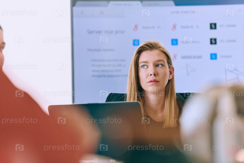 Профессиональная бизнес-леди проводит интересную встречу с коллегами: портрет