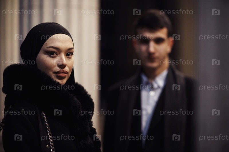 Счастливая мультикультурная деловая пара прогуливается вместе на улице города ночью возле витрины ювелирного магазина