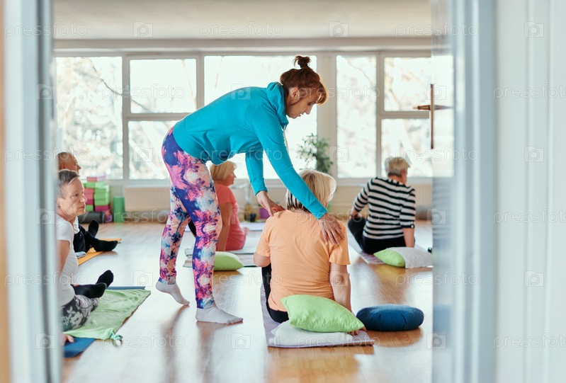 Опытный инструктор по йоге демонстрирует безопасные и эффективные упражнения для пожилых людей, направленные на улучшение гибкости и равновесия