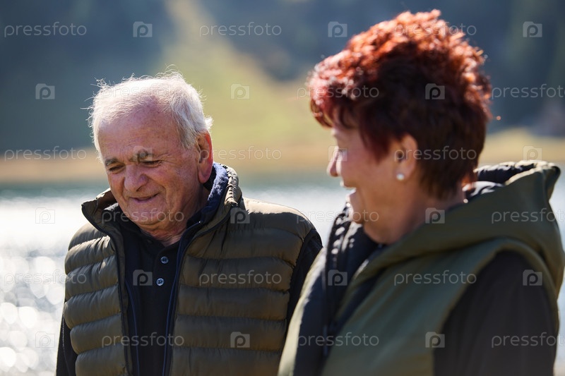 Пожилая пара прогуливается среди захватывающей дух красоты природы, сохраняя свою жизненную силу и спокойствие, наслаждаясь радостями осознанного и гармоничного образа жизни