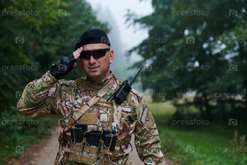 Преданный своему делу солдат отдает честь своему элитному подразделению, демонстрируя товарищество и готовность к самым опасным военным операциям