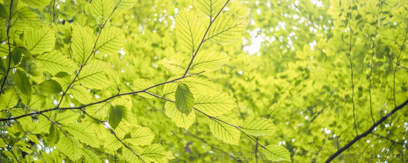 Ветви деревьев с зелеными листьями вид снизу размытый фон боке