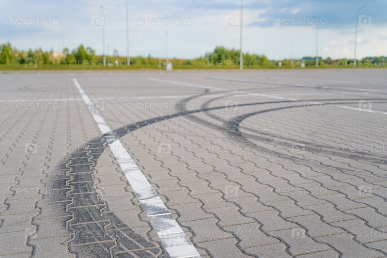 Черные следы от шин дрифт-кара