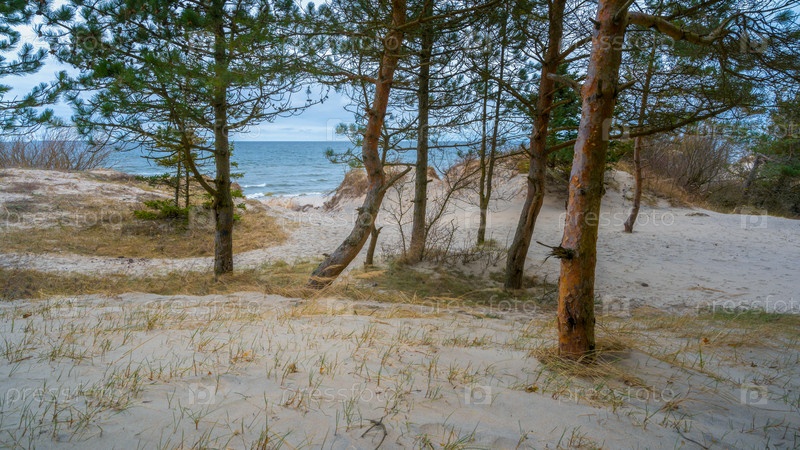 Лес на побережье Балтийского моря в пасмурный день осенью