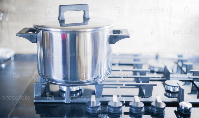 Кухонная газовая плита со стеклянной столешницей крупным планом