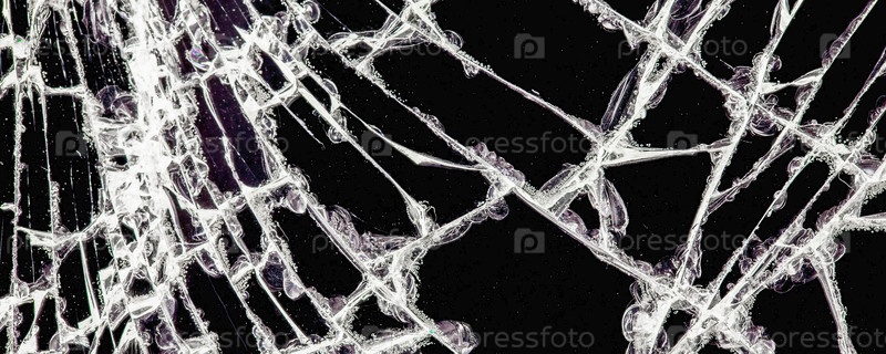 Белые трещины на черной стеклянной поверхности, абстракция, текстура