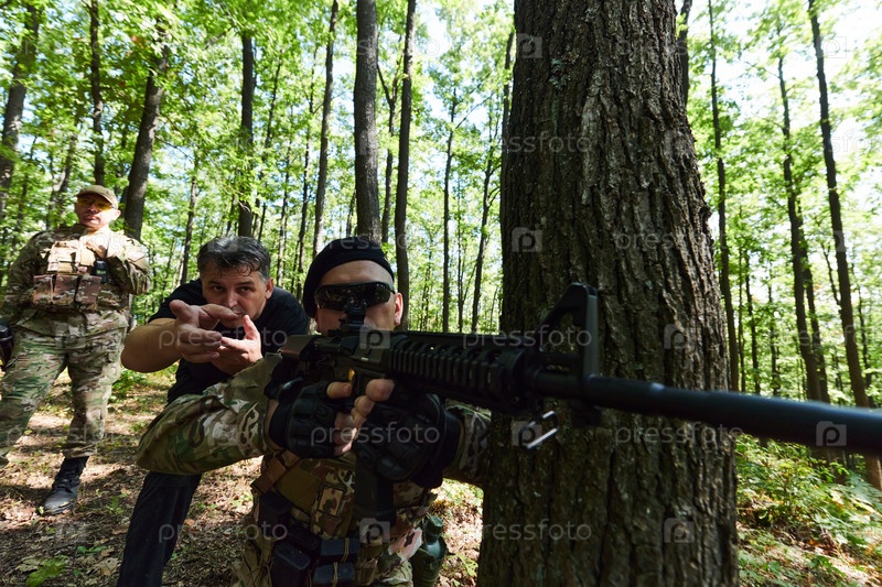 Дисциплинированное и специализированное военное подразделение, облаченное в камуфляж, осуществляющее стратегическое патрулирование и сохраняющее контроль в обстановке с высокими ставками, демонстрирующее свою точность, сплоченность и готовность к специаль