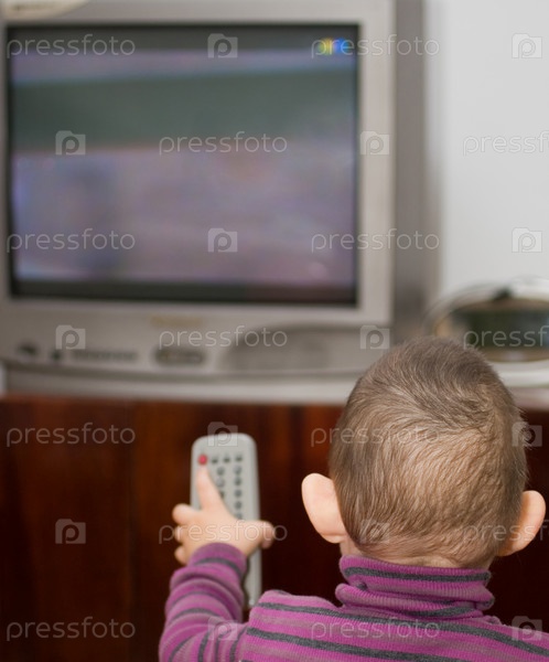 Маленький ребенок включает телевизор