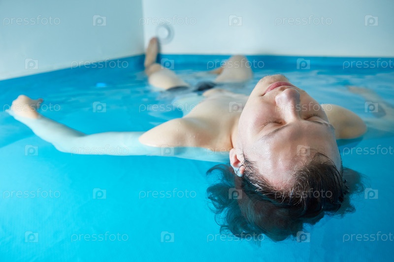 Мужчина плавает в бассейне на спине. Оздоровление, релаксация и спа-терапия