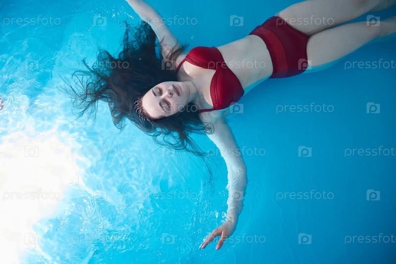 Портрет женщины, плавающей в бассейне. Релаксация и спа-терапия. Копировать пространство