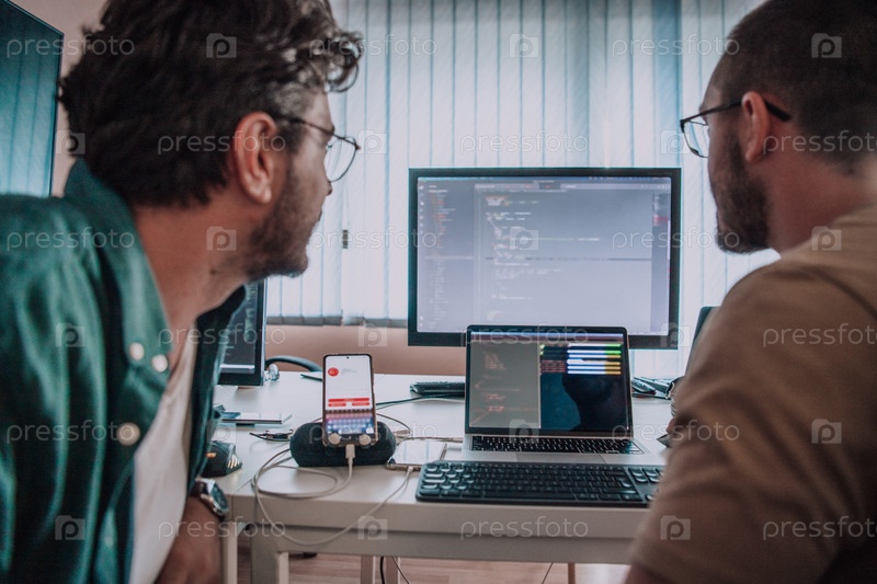 Программисты, погруженные в тесное сотрудничество, усердно трудятся вместе над решением сложных проблем и разработкой инновационных мобильных приложений с безупречной функциональностью
