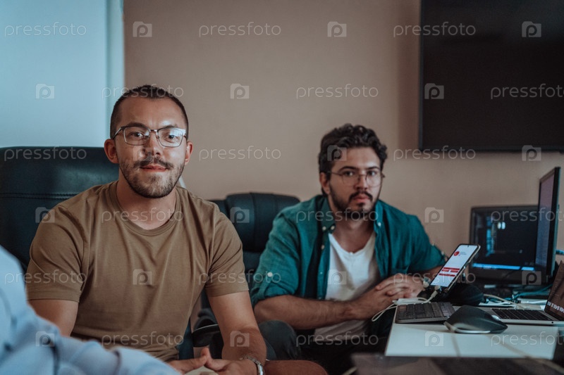 Программисты, погруженные в тесное сотрудничество, усердно трудятся вместе над решением сложных проблем и разработкой инновационных мобильных приложений с безупречной функциональностью