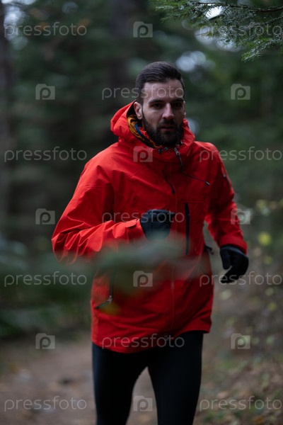 Бегун по пересеченной местности, поднимающийся в горные леса