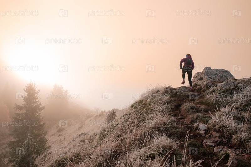Бегунья по пересеченной местности женщина-спортсменка тренируется для ультрамарафона в горах