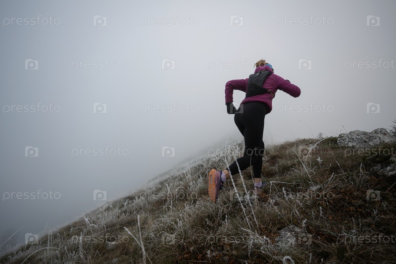 Бегунья по пересеченной местности женщина-спортсменка тренируется для ультрамарафона в горах
