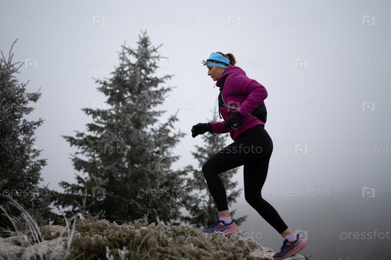 Бегунья по пересеченной местности женщина-спортсменка тренируется для ультрамарафона в горах