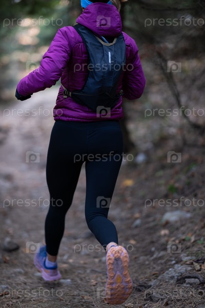 Бегунья по пересеченной местности женщина-спортсменка тренируется для ультрамарафона в горах