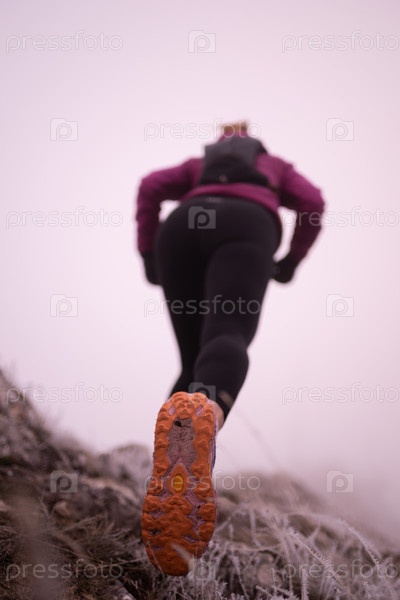 Бегунья по пересеченной местности женщина-спортсменка тренируется для ультрамарафона в горах