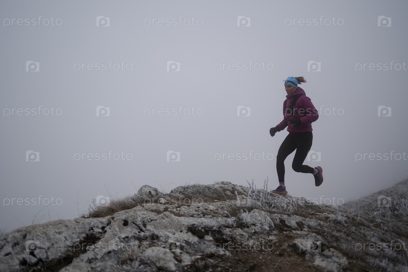 Бегунья по пересеченной местности женщина-спортсменка тренируется для ультрамарафона в горах