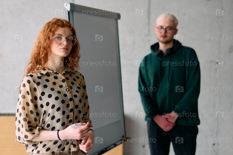 Коллега по бизнесу совместно представляет бизнес-цели и стратегии своей команде в профессиональной офисной обстановке