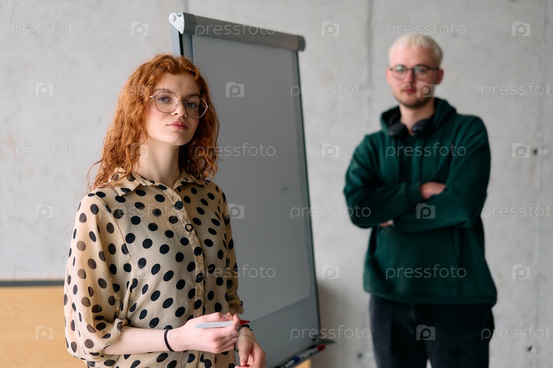 Коллега по бизнесу совместно представляет бизнес-цели и стратегии своей команде в профессиональной офисной обстановке