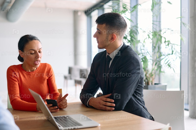 Молодая, разнообразная бизнес-команда сидит вместе в современном офисе, обменивается идеями и бизнес-планами, укрепляя сотрудничество и инновации для будущего успеха