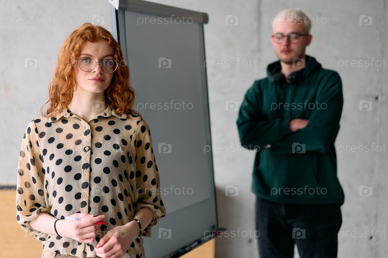 Коллега по бизнесу совместно представляет бизнес-цели и стратегии своей команде в профессиональной офисной обстановке