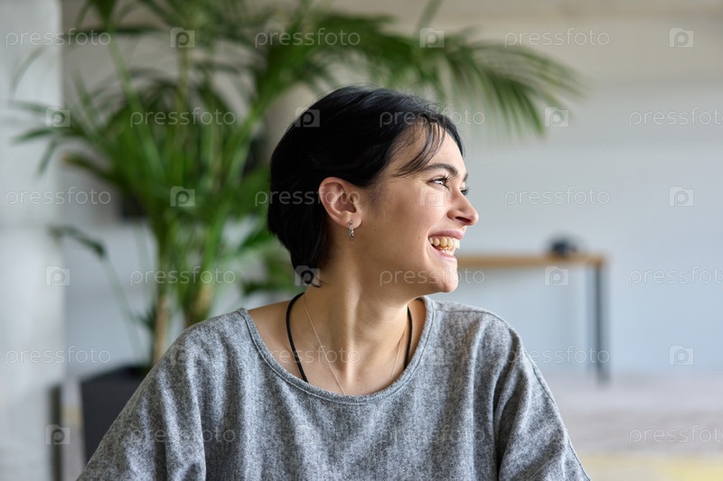 Портрет молодой бизнес-леди крупным планом, участвующей в профессиональной встрече, уверенно обсуждающей идеи и стратегии со своими коллегами