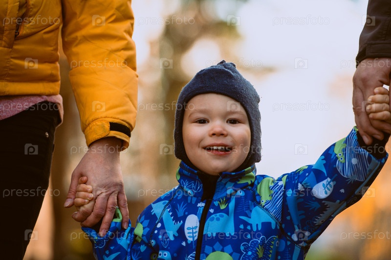 Родители идут рука об руку со своим сыном по очаровательным городским улицам, наслаждаясь теплом времени года и создавая радостные воспоминания вместе
