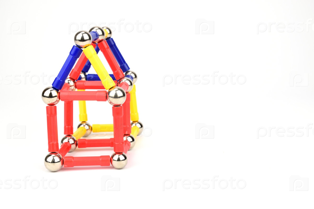 Вид спереди каркаса дома, сделанного из магнитного конструктора