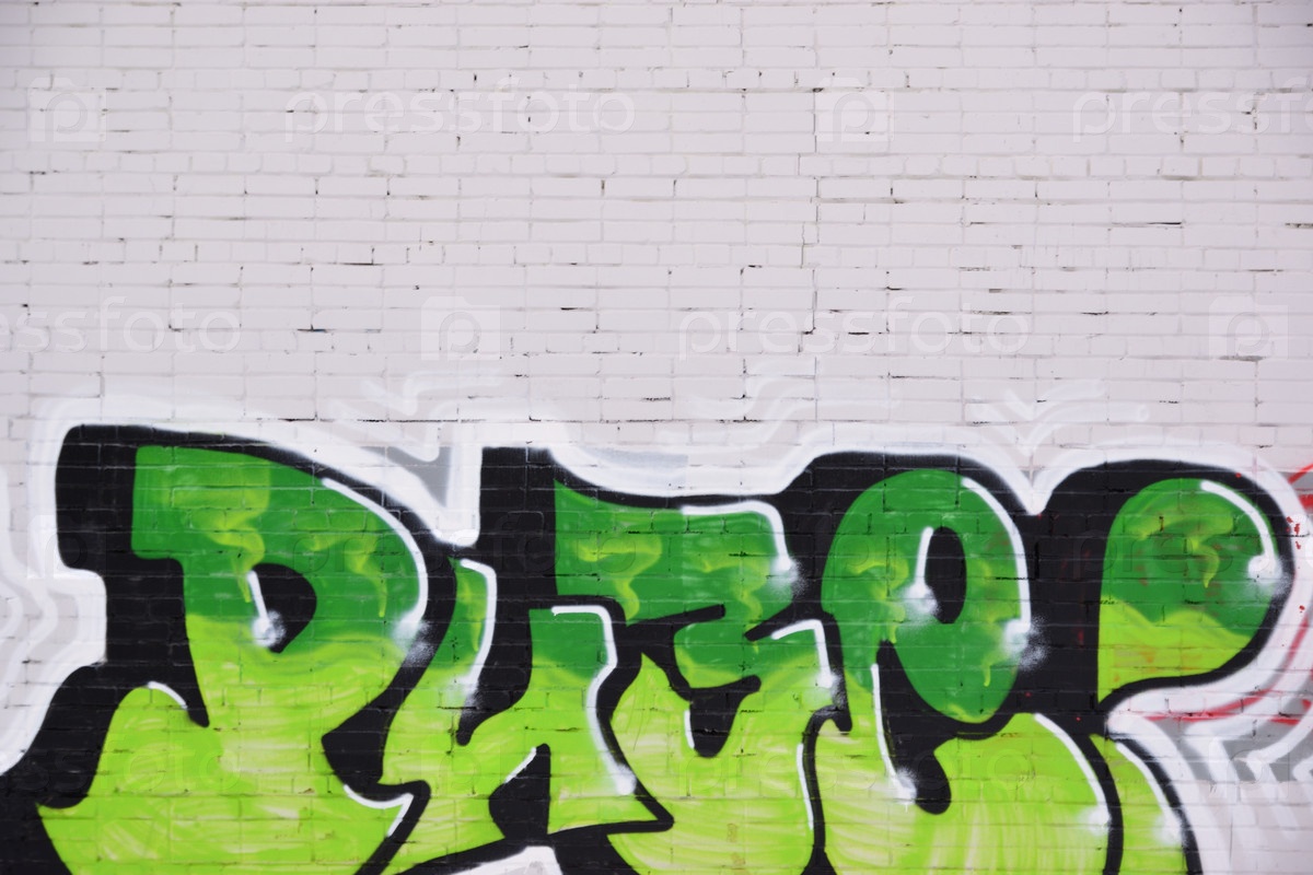 Белый кирпич с граффити-надписями