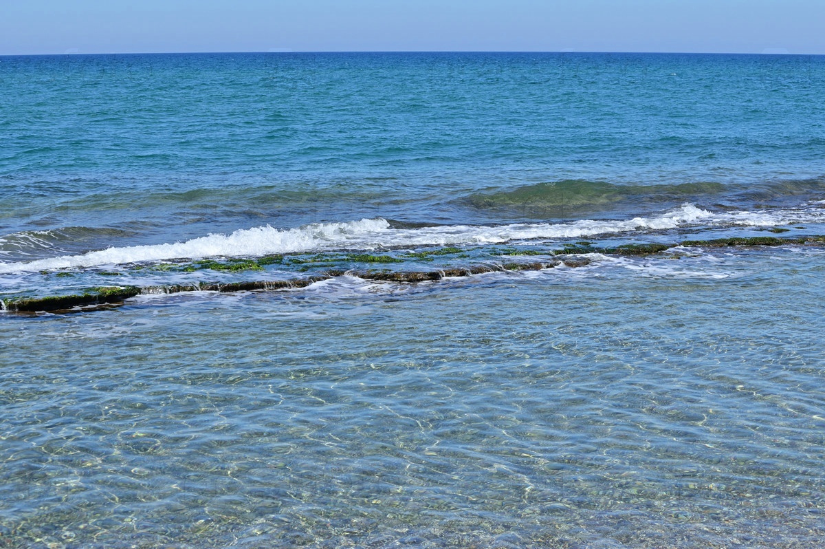 Морской прибой, накатывающий на подводную природную каменную плиту