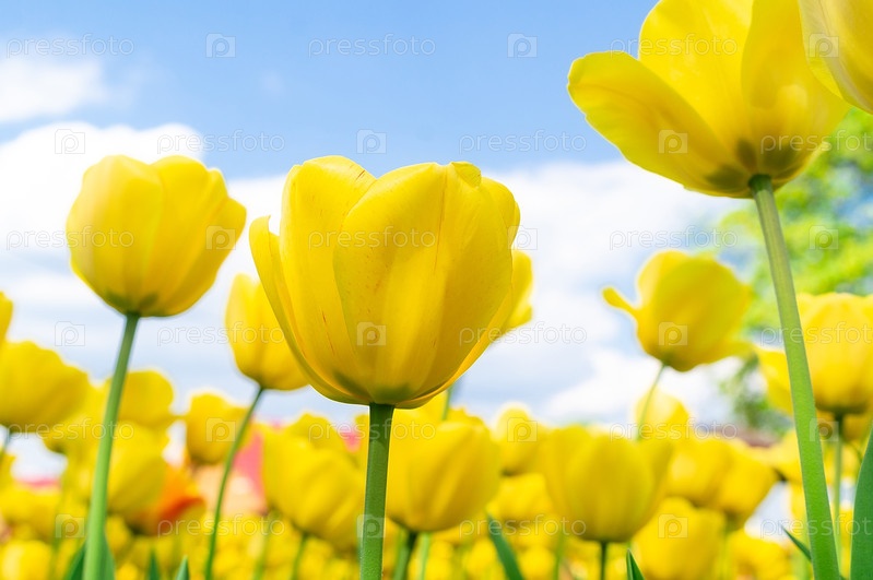 Желтые тюльпаны крупным планом на заднем плане