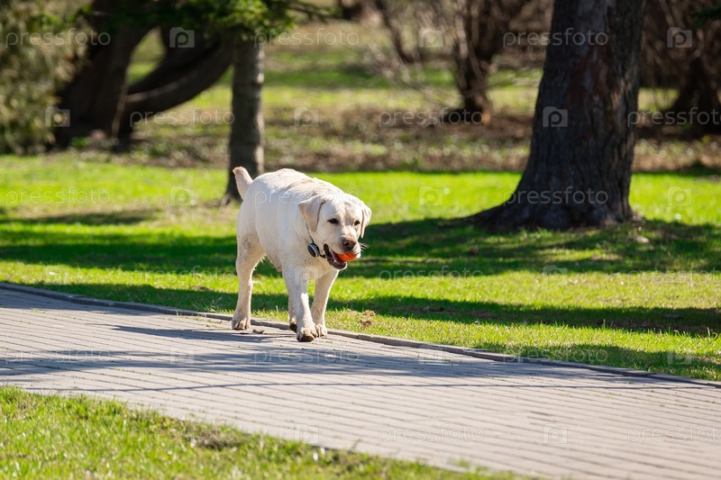 Собака породы лабрадор-ретривер с мячом