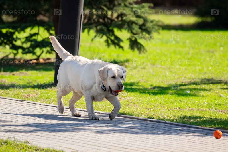 Собака породы лабрадор-ретривер с мячом