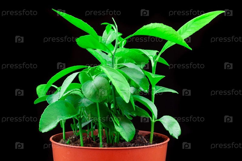 Цитрусовое растение черный фон