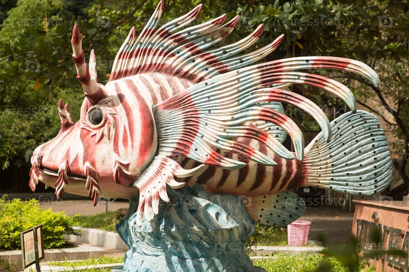Статуя рыбы-бабочки в парке возле аквапарка