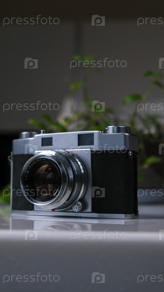 Старый винтажный фотоаппарат на фоне растений