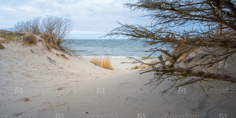 Лес на побережье Балтийского моря в пасмурный день осенью