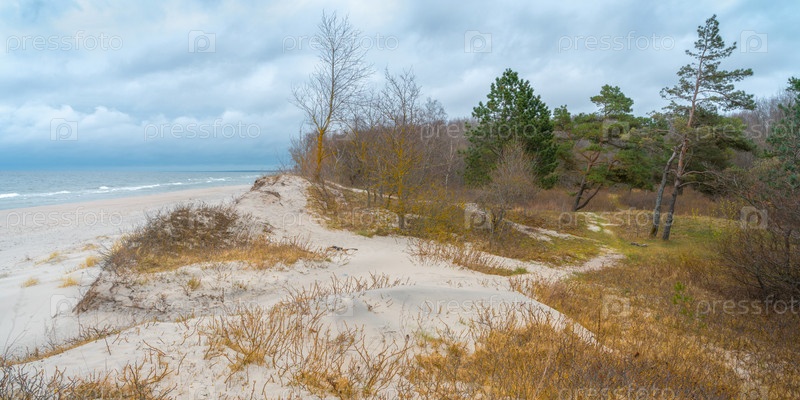 Лес на побережье Балтийского моря в пасмурный день осенью