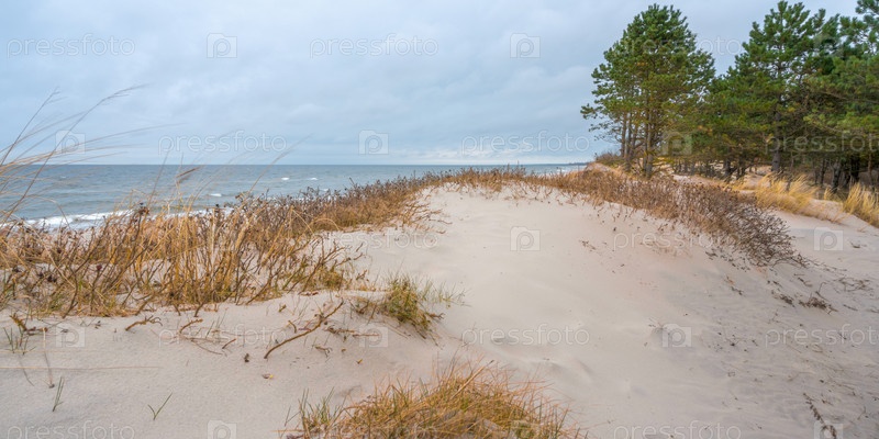 Лес на побережье Балтийского моря в пасмурный день осенью